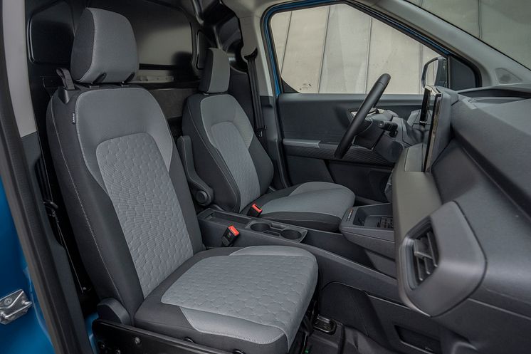 Den nya E-Transit Courierhar blivit hela 25 % större än den tidigare generationen Courier. Lastutrymmet är nu hela 2,9 m³ och är lika stort som storebror Connect i den korta versionen. Den levereras med en motor på 136 hk som kan snabbladdas med en laddare på 100 kW. Efter tio minuter har du upp till 100 km extra elektrisk räckvidd. Snabbladdning från 10 - 80% görs på cirka 23 minuter. Med en 11 kW ombordladdare kan du ladda den kompakta elbilen hemma från 10 - 100 % på cirka 5,3 timmar. E-Transit Courier har en maximal nyttolast på 700 kg, kan dra en släpvagn på upp till 750 kg och har en räckvidd på upp till 301 km3.