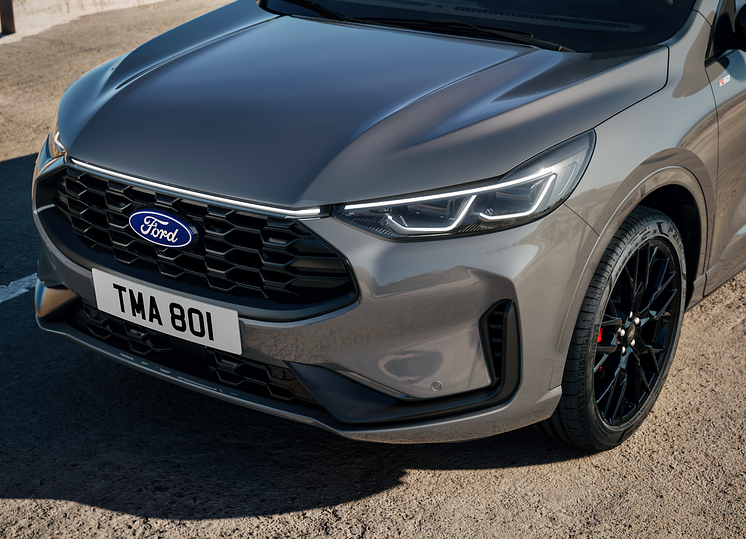 Mörka detaljer inkluderar 20-tums Ford Performance-fälgar som ger ett djärvt och sportigt uttryck, samtidigt som de framhäver Kugas stilrena, kraftfulla formspråk – och skapar en slående kontrast mot de röda bromsoken.