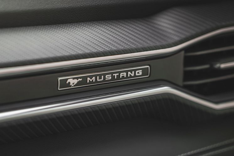 Den nya Mustangen lanseras med 12 färgalternativ, inklusive tre nya kulörer – iögonfallande Blue Ember, Vapor Blue och Yellow Splash. Kunderna kan också välja mellan svarta eller röda Brembo-bromsok, båda med Mustang-logotypen, plus ett urval av två nya 19-tums lättmetallfälgar.